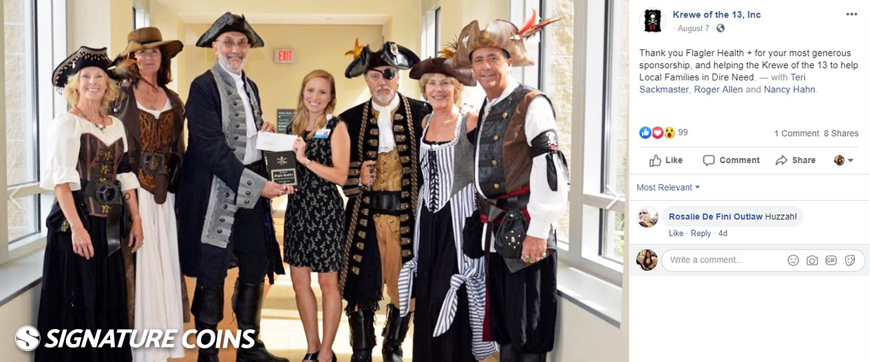 From all of us here at Signature Coins, we wish the Krewe of the 13 fair winds and following seas on their mission. And if you find yourself in St. Augustine anytime soon, keep an eye out for pirates! Chances are, they’ll have a treasured pirate coin in their pocket ready for any challenger who crosses their path.