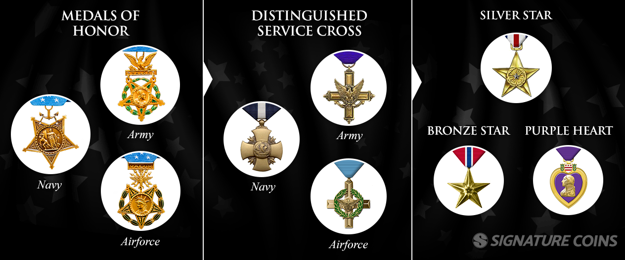 The hierarchy of military medals for gallantry, valor and heroism is sometimes known as the Pyramid of Honor. The Medal of Honor is the highest form of recognition followed by the Distinguished Service Cross (Army), Air Force Cross (Air Force) and the Navy Cross (Navy). Each of these awards is second only to the Medal of Honor in their respective branches of service.