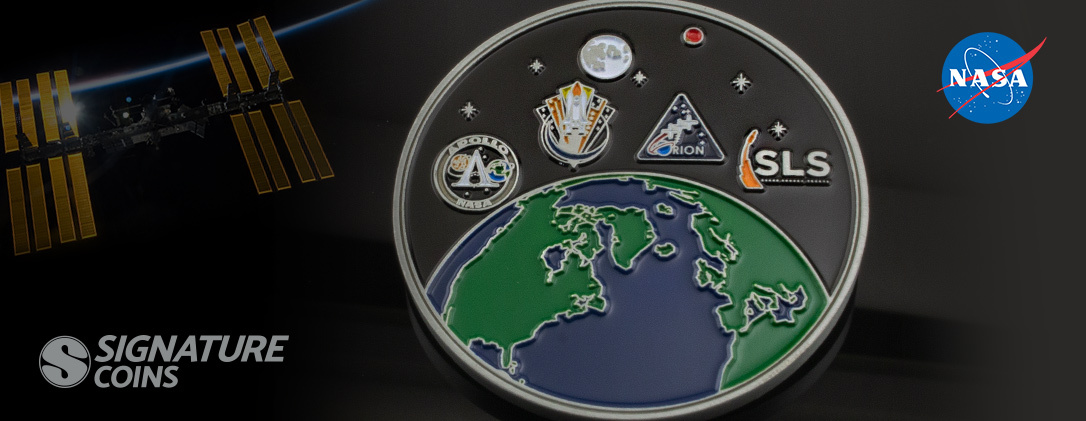 Since the Apollo missions, NASA continues its mission to advance scientific study and research into the outer reaches by launching manned and unmanned craft into space. Even with the recent development of a private space industry, NASA’s name continues to bring images of national pride and Neil Armstrong’s famous walk on the surface of the moon. NASA’s historical line of coin medallions continues to chronicle their 60 years of work exploring the final frontier from tragedies like the challenger explosion to triumphs such as landing Mars Curiosity Rover.